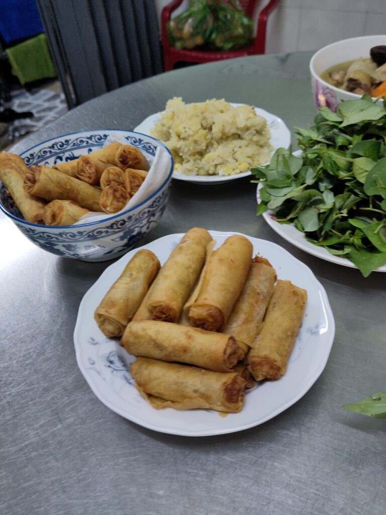 Bei Bep Me In haben wir sehr leckeren Crispy Tofu und Haut gegessen. Dazu gab es Wasserspinat (auch bekannt als Morning Glory oder rau muong) und Reis. Alles sehr lecker!