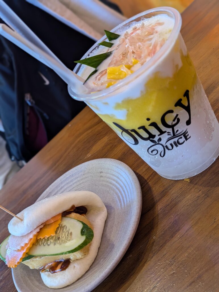 Kaum saßen wir vor dem Banh Mi Laden, fing es auch schon an zu regnen. Wir waren zum Glück mit einem Regenschirm bewaffnet und konnten so auch weiterhin ungestört draußen essen. Allerdings haben wir aufgrund des Regens dann ein Grab (Taxi) wieder in die Stadt genommen, um in einem Einkaufscenter zu stöbern.